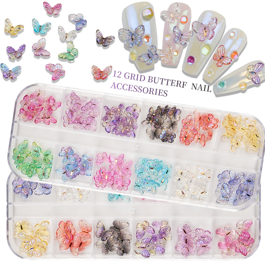 12Grids Aurora Mini Butterfly Nail Art Charms Nail Decoration