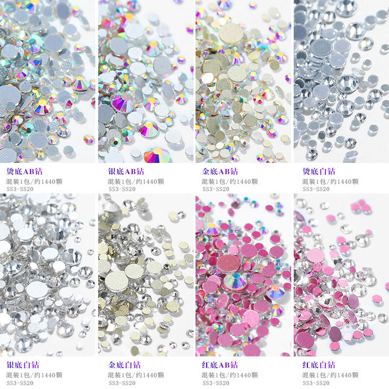 1440pcs AB Glass Flat Bottom Nail Rhinestone