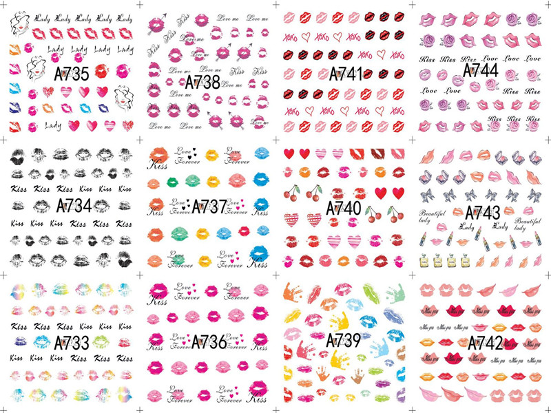 You are here: Home » Products » Nail Sticker » Water Nail Sticker » A Series » A733-744 Lip Water Nail Sticker