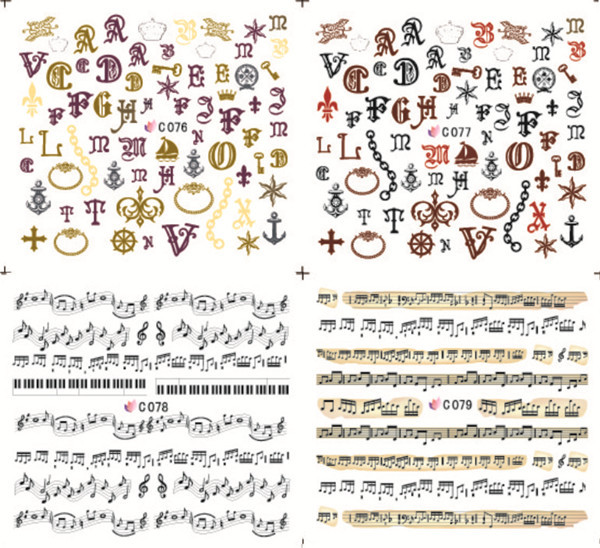 You are here: Home » Products » Nail Sticker » Water Nail Sticker » C/D Series » C076-079 Letters And Music Note Water Nail Sticker