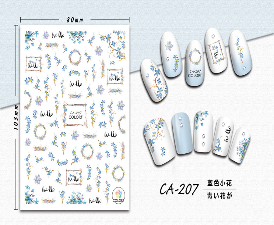 You are here: Home » Products » Nail Sticker » 3D Nail Sticker » CA Series Nail Sticker » CA-207 3D Blue Flower Nail Sticker