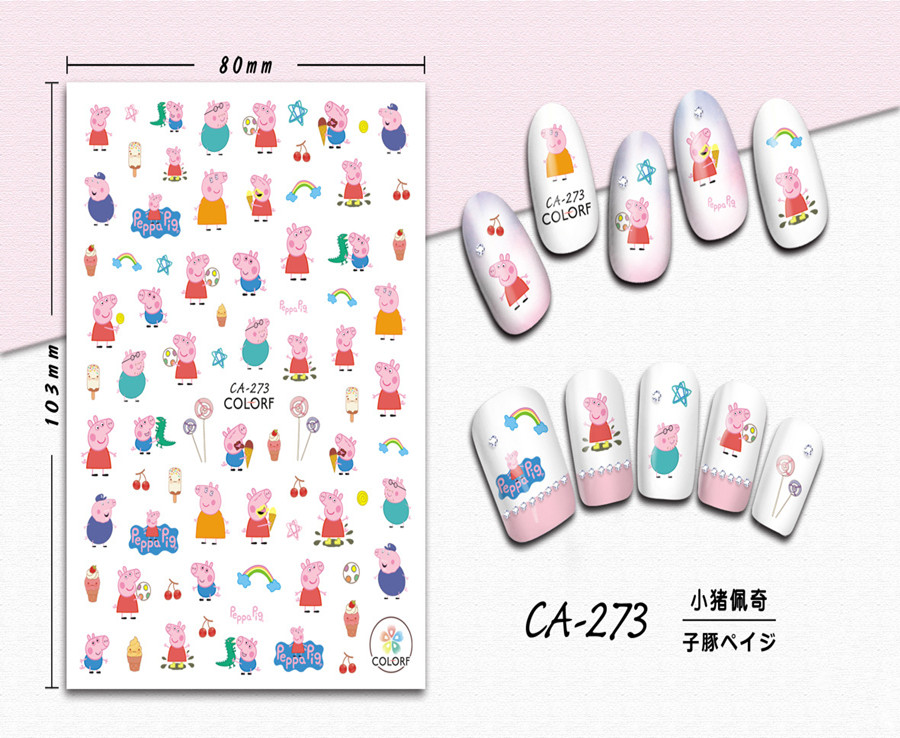 You are here: Home » Products » Nail Sticker » 3D Nail Sticker » CA Series Nail Sticker » CA-273 3D Peppa Pig Nail Sticker