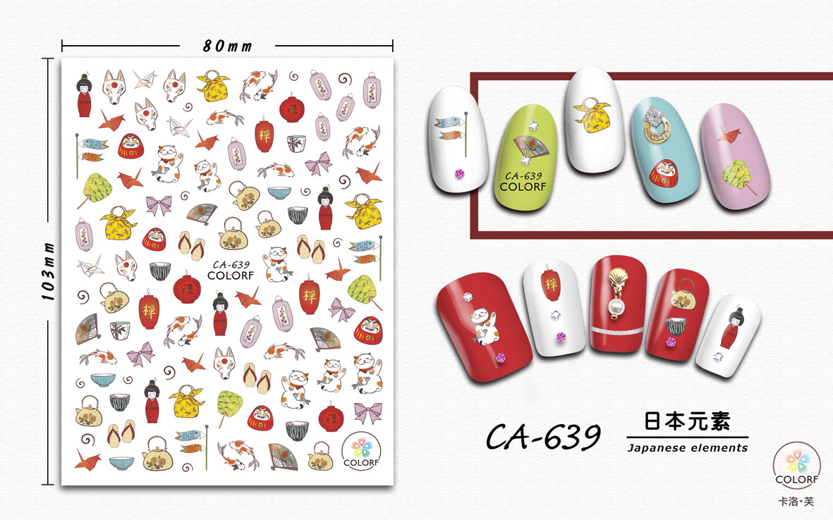 You are here: Home » Products » Nail Sticker » 3D Nail Sticker » CA Series Nail Sticker » CA639 Japanese Style Self-adhesive Nail Art Sticker