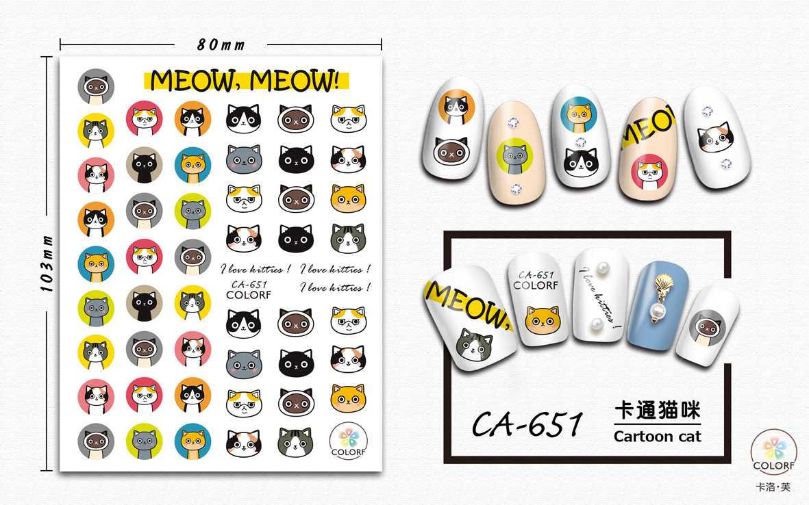 You are here: Home » Products » Nail Sticker » 3D Nail Sticker » CA Series Nail Sticker » CA651 Kitty Cat Self-adhesive Nail Art Sticker
