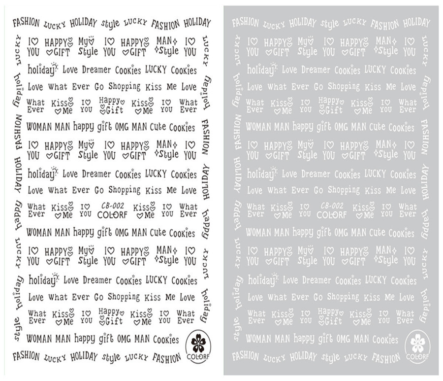 You are here: Home » Products » Nail Sticker » 3D Nail Sticker » CB Series Nail Sticker » CB-002 3D Words Nail Sticker