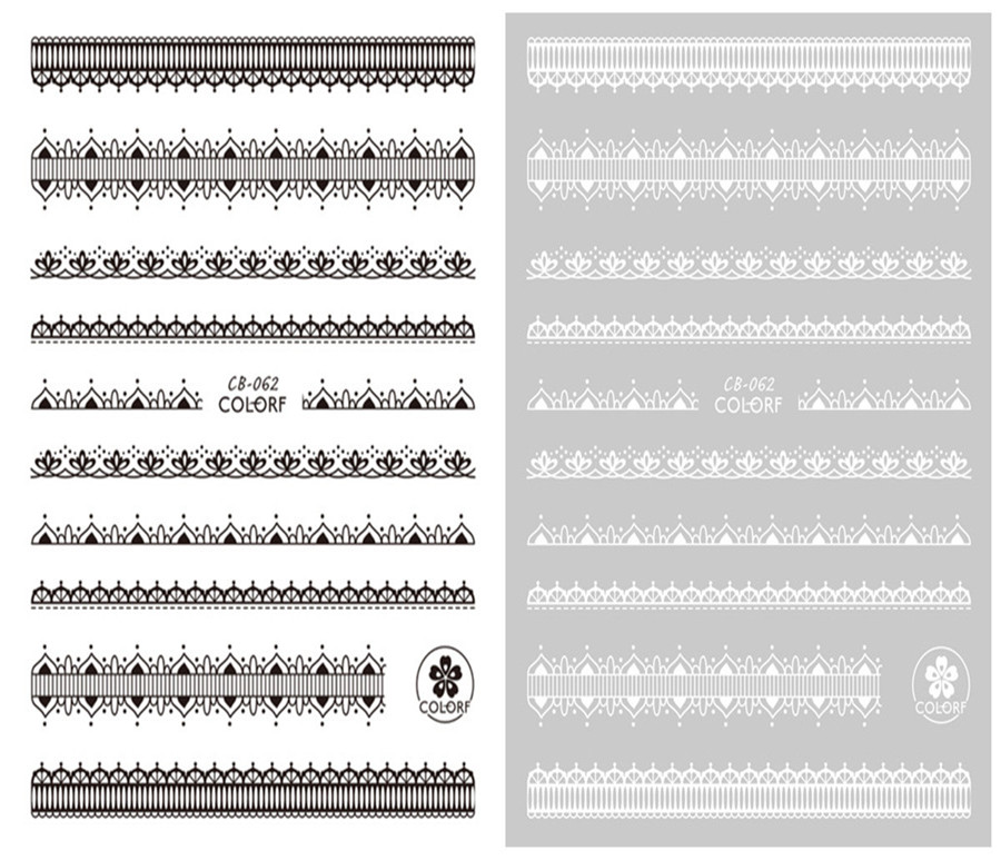 You are here: Home » Products » Nail Sticker » 3D Nail Sticker » CB Series Nail Sticker » CB-062 3D Strip Lace Self Adhesive Nail Art Sticker