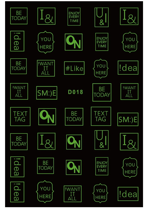 You are here: Home » Products » Nail Sticker » 3D Nail Sticker » Brand Logo 3D Nail Sticker » D018 Glow In Night Brand Logo 3D Nail Art Sticker
