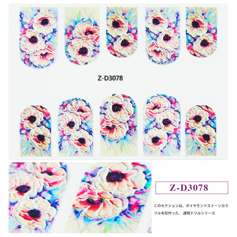 You are here: Home » Products » Nail Sticker » 5D nail sticker » 5D-K Series » Flower Series Emboss 5D Nail Water Sticker