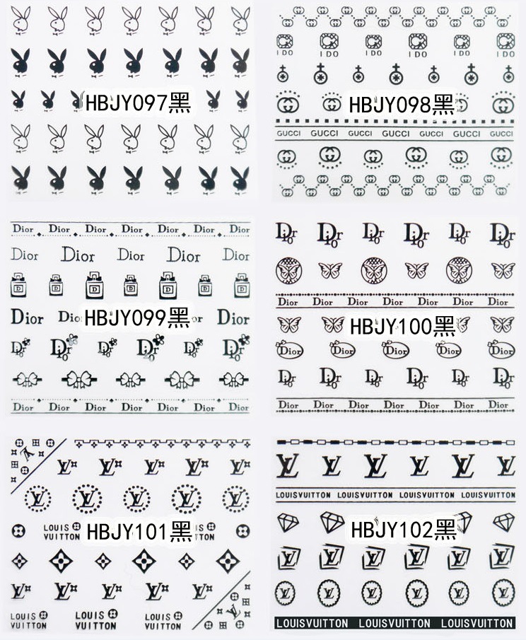You are here: Home » Products » Nail Sticker » 3D Nail Sticker » HBJY Series Nail Sticker » HBJY097-108 3D Black Brand Logo Nail Art Sticker