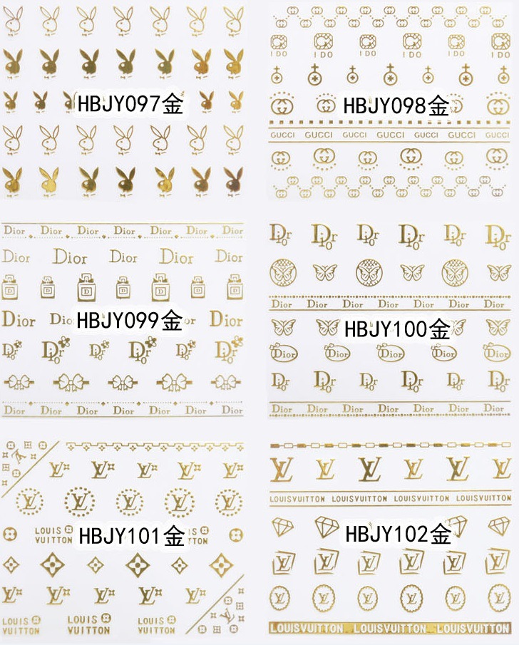 HBJY097-108 3D Gold Brand Logo Nail Art Sticker
