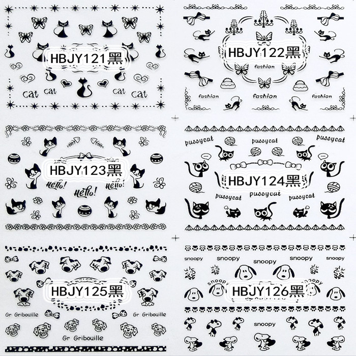 You are here: Home » Products » Nail Sticker » 3D Nail Sticker » HBJY Series Nail Sticker » HBJY121-132 3D Black Animals Nail Art Sticker