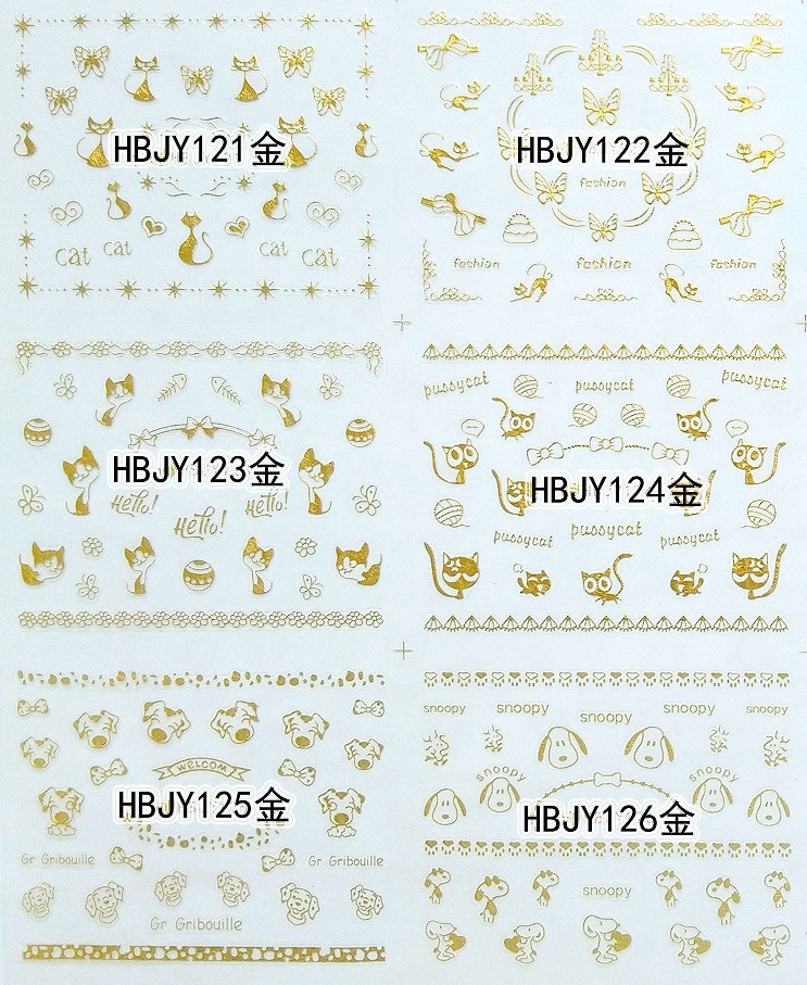 You are here: Home » Products » Nail Sticker » 3D Nail Sticker » HBJY Series Nail Sticker » HBJY121-132 3D Gold Animals Nail Art Sticker