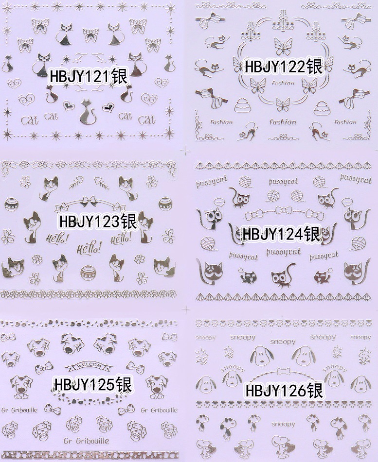 You are here: Home » Products » Nail Sticker » 3D Nail Sticker » HBJY Series Nail Sticker » HBJY121-132 3D Silver Animals Nail Art Sticker