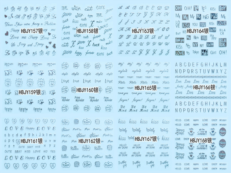 HBJY157-168 3D Silver Letters Nail Art Sticker