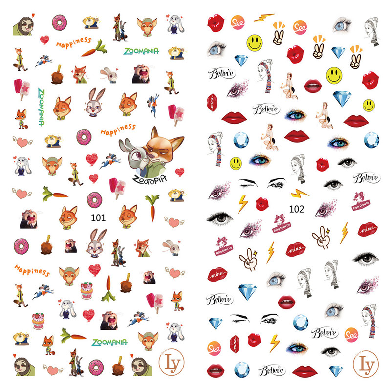 LY101-102 Thin 3D Zootopia And Women Nail Art Sticker