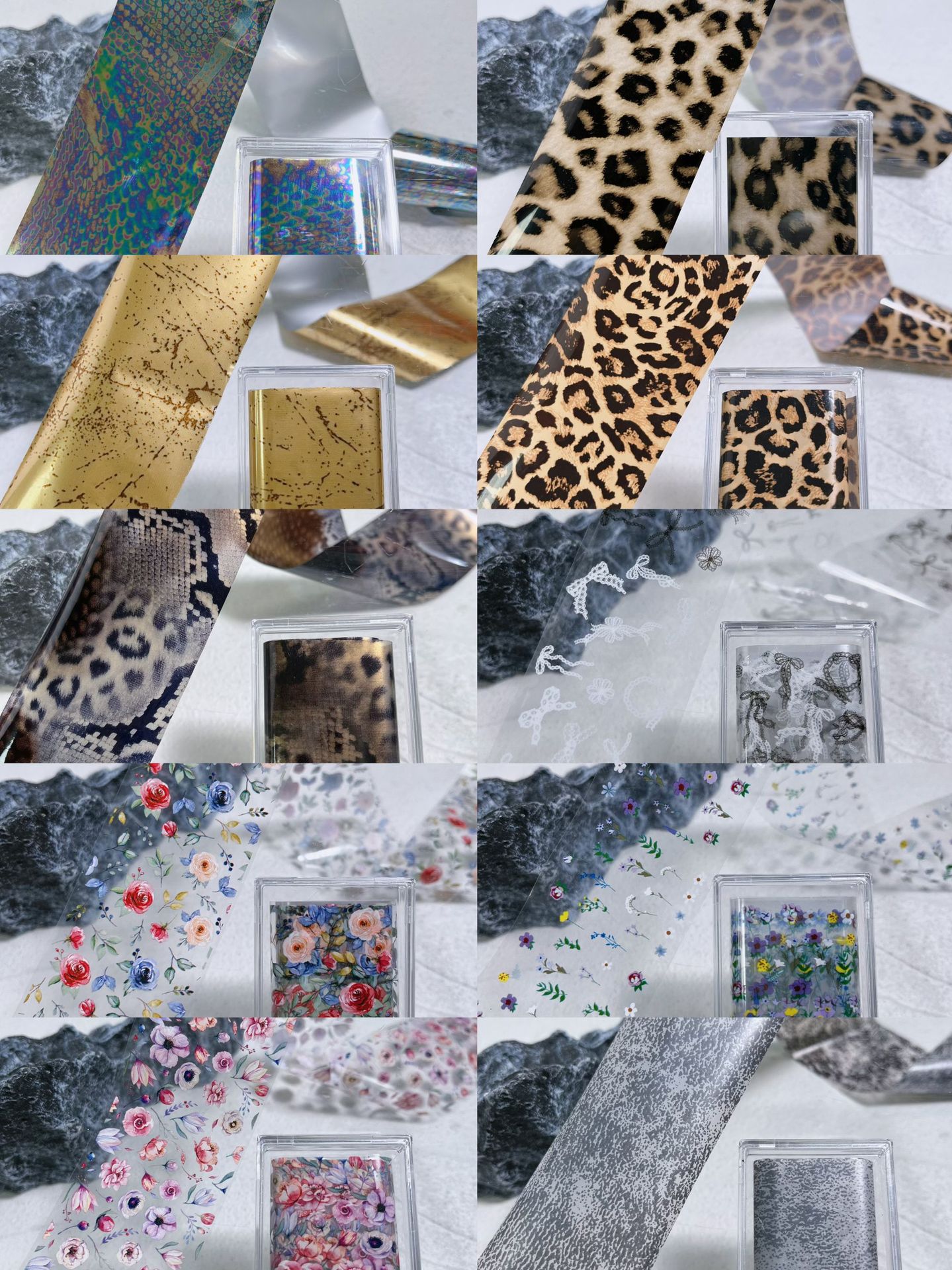 You are here: Home » NEW PRODUCTS » 2025 New Arrival » January,2025 New Arrival » Leopard Print Snake Pattern Lace Flower Mirror Effect Nail Transfer Foil Sticker