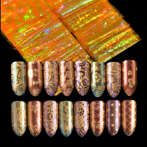 You are here: Home » Products » Nail Decoration » Nail Transfer Foil » Mixed 16 Designs Holographic Gold Nail Foils Sticker
