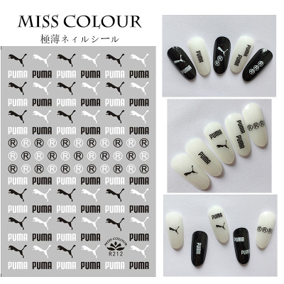 R212 PUMA Black & white color Brand Logo 3D Nail Art Sticker