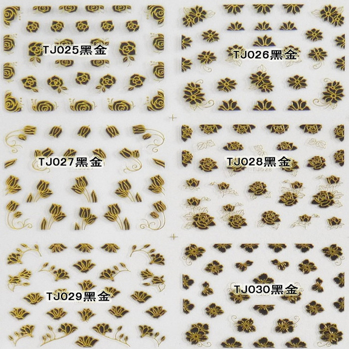 You are here: Home » Products » Nail Sticker » 3D Gold Silver Nail Sticker » TJ Series Nail Sticker » TJ025-036 3D Black Gold Flower Nail Art Sticker