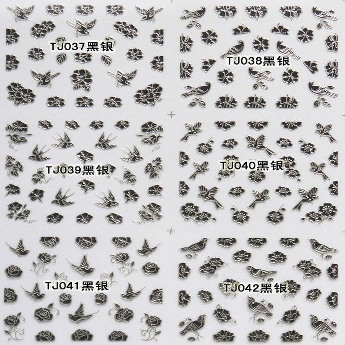 You are here: Home » Products » Nail Sticker » 3D Gold Silver Nail Sticker » TJ Series Nail Sticker » TJ037-048 3D Black Silver Butterfly Nail Art Sticker