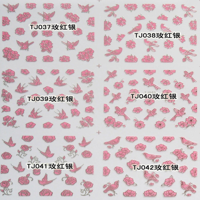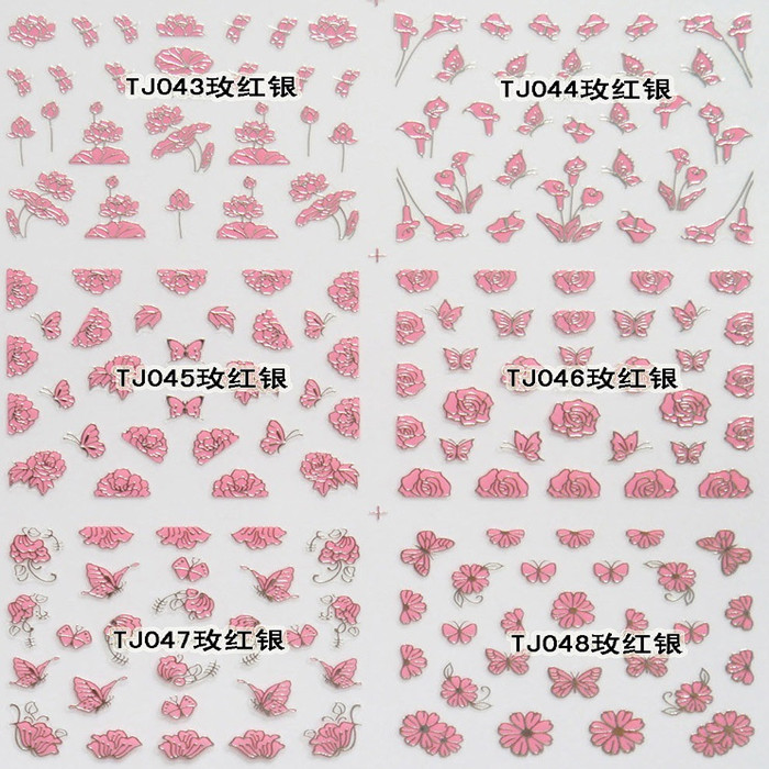 You are here: Home » Products » Nail Sticker » 3D Gold Silver Nail Sticker » TJ Series Nail Sticker » TJ037-048 3D Rose Silver Butterfly Nail Art Sticker