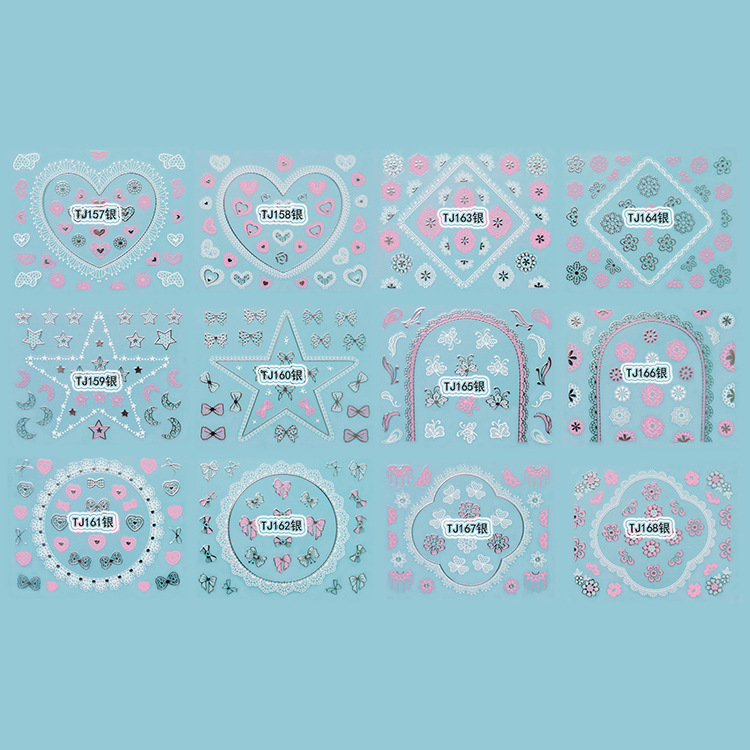 You are here: Home » Products » Nail Sticker » 3D Gold Silver Nail Sticker » TJ Series Nail Sticker » TJ157-168 3D Silver Nail Art Sticker