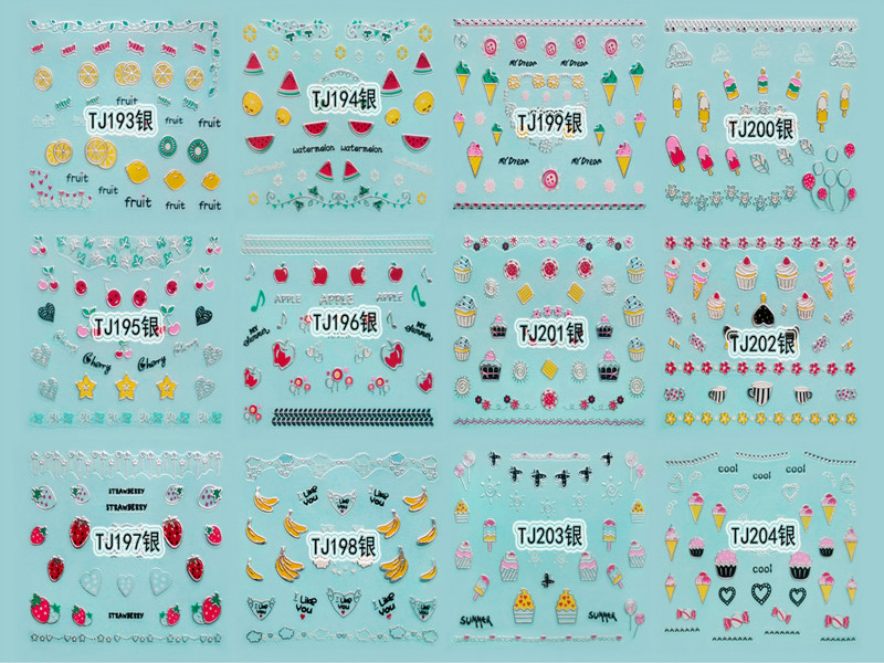 You are here: Home » Products » Nail Sticker » 3D Gold Silver Nail Sticker » TJ Series Nail Sticker » TJ193-204 3D Silver Dessert Nail Art Sticker