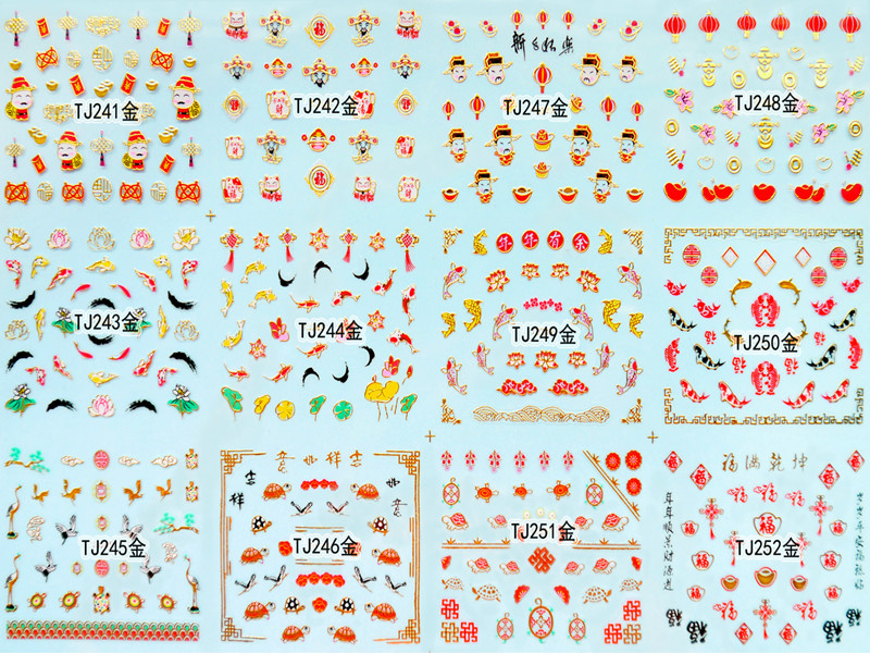 You are here: Home » Products » Nail Sticker » 3D Gold Silver Nail Sticker » TJ Series Nail Sticker » TJ241-252 3D Gold New Year Nail Art Sticker