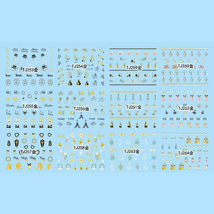 You are here: Home » Products » Nail Sticker » 3D Gold Silver Nail Sticker » TJ Series Nail Sticker » TJ253-264 3D Gold Nail Art Sticker