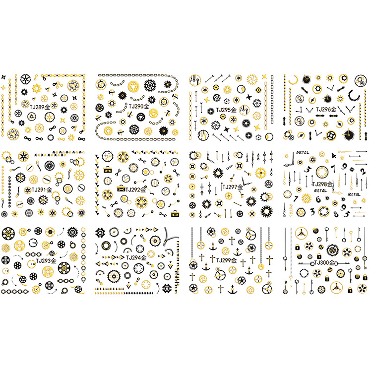 You are here: Home » Products » Nail Sticker » 3D Gold Silver Nail Sticker » TJ Series Nail Sticker » TJ289-300 3D Gold Gear Nail Art Sticker