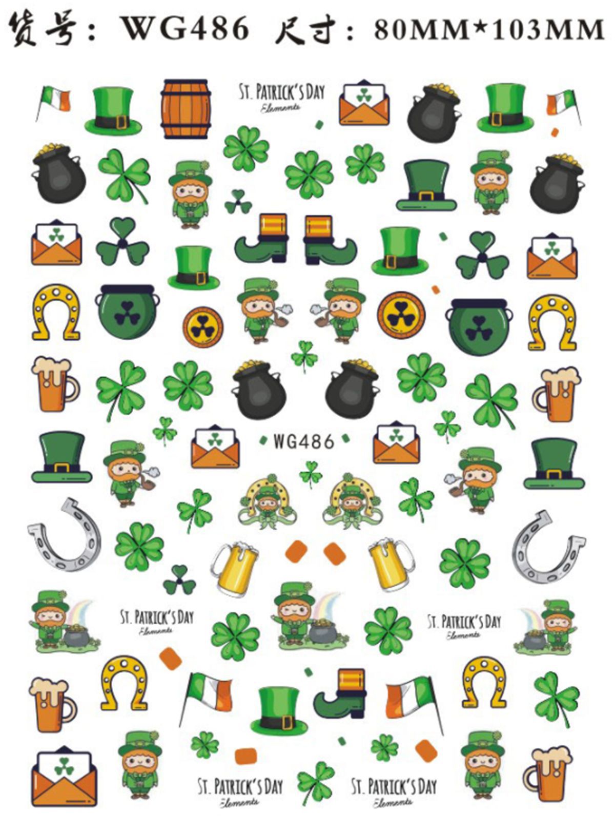 You are here: Home » Products » Nail Sticker » 3D Nail Sticker » WG Series Nail Sticker » WG483-488 St. Patrick's Day Shamrocks Nail Sticker