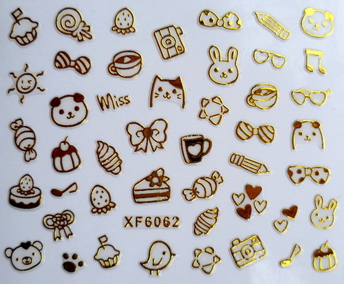 You are here: Home » Products » Nail Sticker » 3D Gold Silver Nail Sticker » XF Series Metal Nail Sticker » XF6061-6066 3D Gold Metal Nail Art Sticker