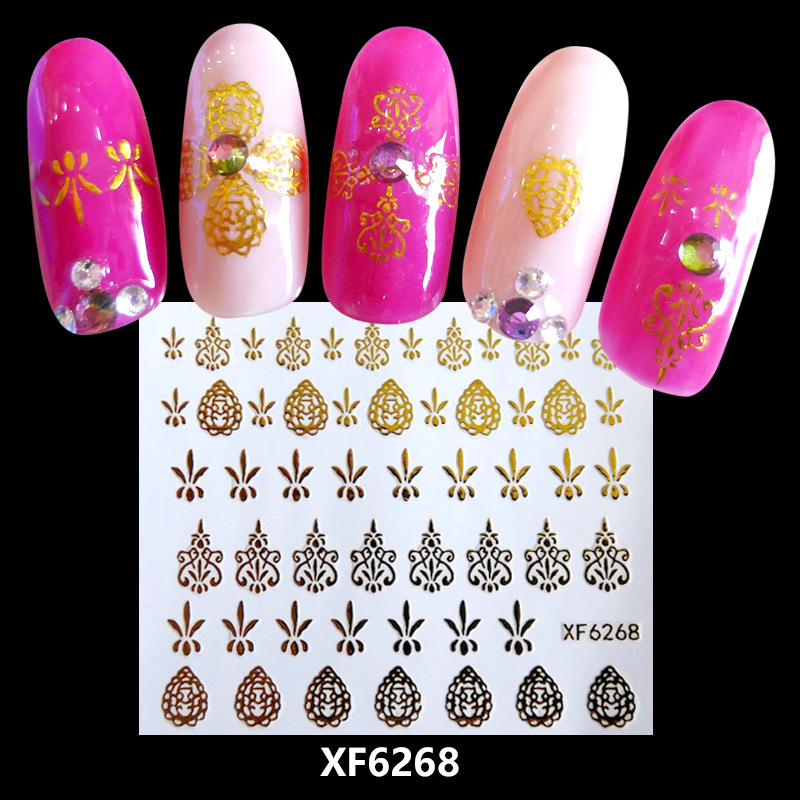 You are here: Home » Products » Nail Sticker » 3D Gold Silver Nail Sticker » XF Series Metal Nail Sticker » XF6268 3D Gold Metal Nail Art Sticker